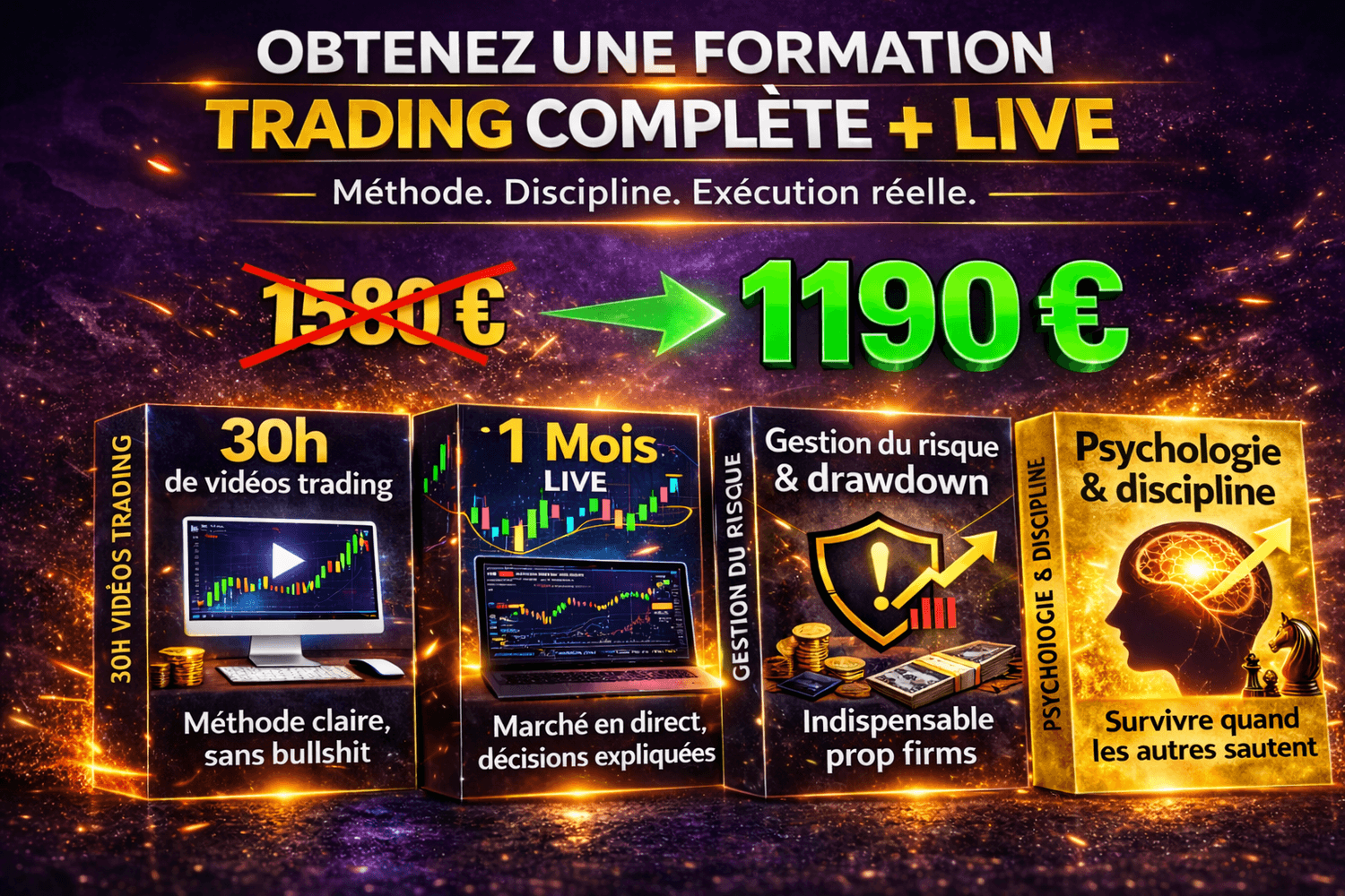 Vous aurez accés pendant 1 Mois calendaire au Live Trading Discord ou Zoom. 1 mois de Live comprends environ 20 Live Trading.